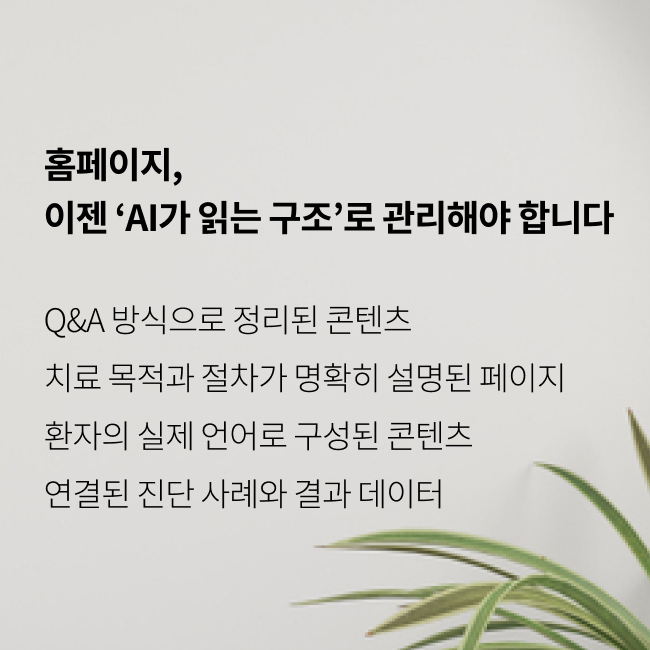AI가 병원 정보를 참조하고 요약하는 핵심 매체가 되었습니다.